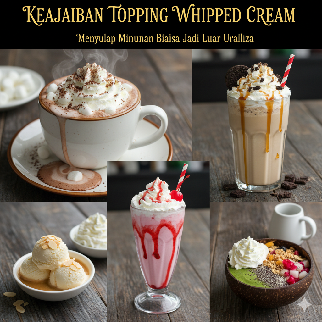 Pernahkah Anda merasa takjub saat melihat secangkir minuman hangat atau segar yang dihiasi dengan gumpalan putih lembut di atasnya? Ya, itu adalah whipped cream, topping ajaib yang mampu mengubah tampilan dan rasa minuman biasa menjadi sebuah pengalaman yang luar biasa. Dari kopi hitam pahit hingga milkshake cokelat creamy, kehadiran whipped cream selalu berhasil menambah daya tarik tersendiri.