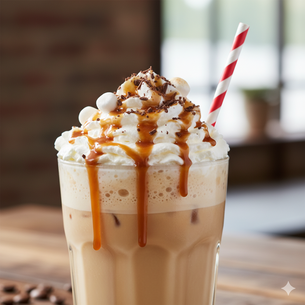 - Frappuccino & Blended Coffee: Minuman kopi dingin yang diblended ini seringkali menggunakan whipped cream sebagai “mahkota”-nya. Kombinasi antara kopi, susu, es, dan sirup dengan sentuhan akhir whipped cream menjadikannya pilihan favorit di berbagai kedai kopi.