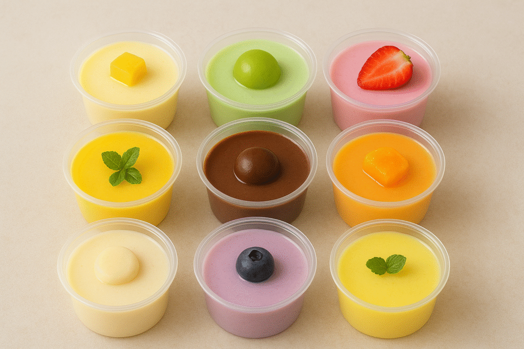 - Puding Cokelat, Kopi, atau Matcha: Ganti sebagian susu dengan cokelat cair, kopi instan yang sudah diseduh, atau bubuk matcha untuk menciptakan varian rasa yang digemari banyak orang.